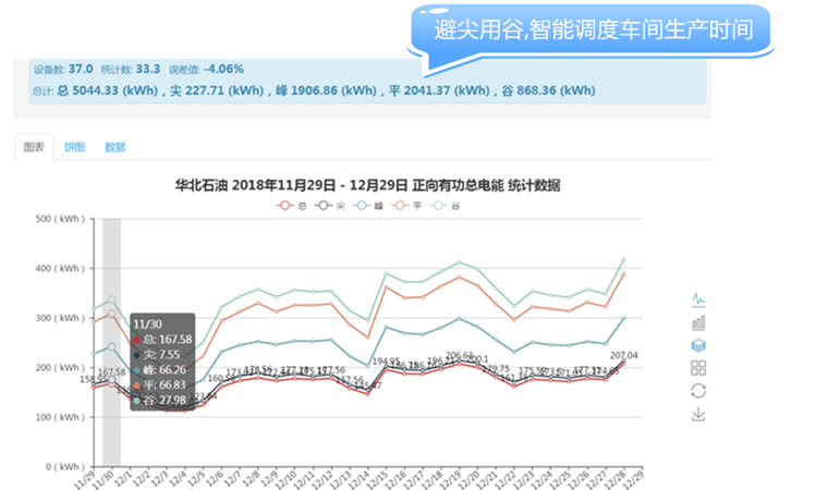 能源监测抄表系统,可绘制各项电量数据曲线图,可显示不同部门各时段用电情况