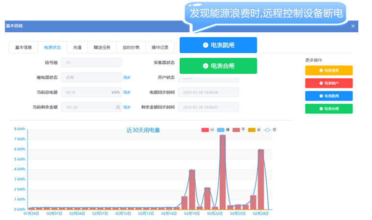 系统可定时或手动实时控制电表,如遇能源浪费及时断电,实现降低生产成本。