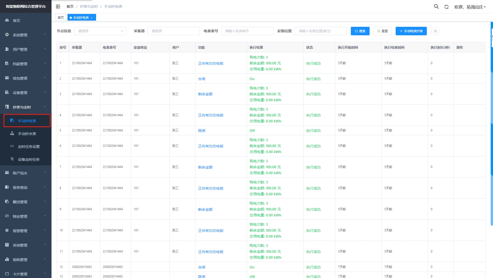 | 远程抄表 | 远程抄电表的 用电量、剩余金额、电流、电压、功率 |